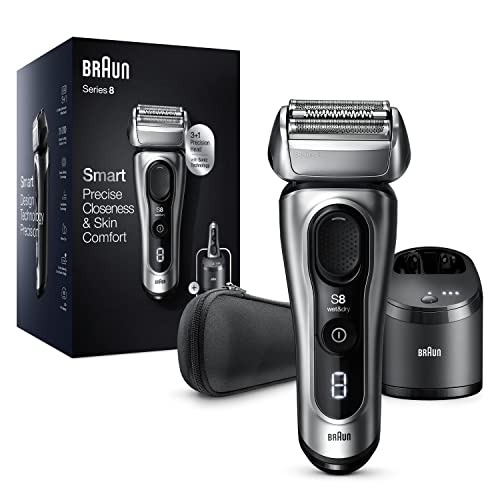| Rasoio Elettrico Barba, Custodia da Viaggio, Tecnologia Sonica, Lame Flessibili, Custodia da Viaggio, Idea Regalo, 8467cc Grigio