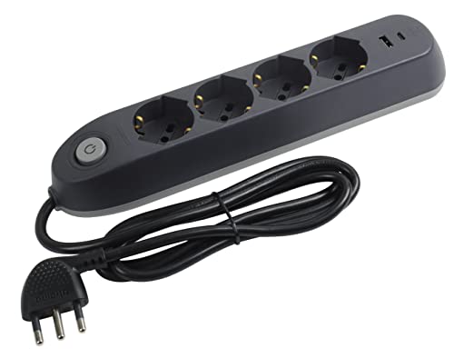 | 2 Prese USB e 4 Prese Polivalenti (Schuko 10/16A e Bipasso), Ciabatta Elettrica con Interruttore Cavo 1,5m Spina 16A, Robusta e Salvaspazio, Nero