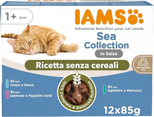 Bustine di cibo umido per gatti IAMS Advanced Nutrition Grain Free Sea Collection senza cereali in salsa per gatti di età superiore a 1 anno