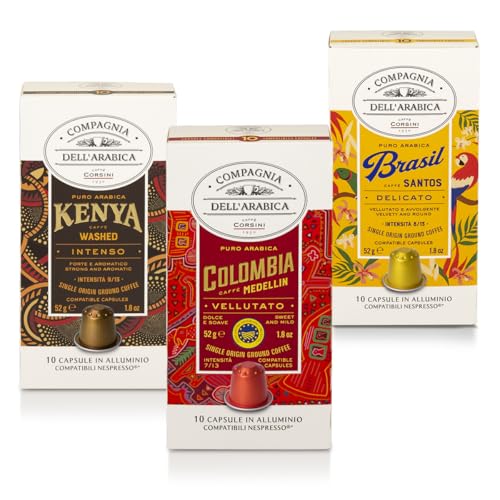 | 100% Arabica, Kenia, Brasile, Colombia, 3 Confezioni da 10 (Totale 30 Capsule)