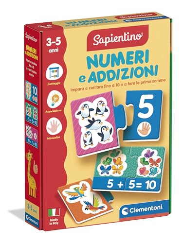 | Numeri e Addizioni, Gioco Educativo Bambini 3-5 Anni, Puzzle per Riconoscere Le Cifre e Imparare a Contare, Made in Italy, Lingua Italiana, 16840