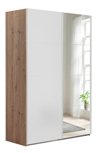 | Armadio a 2 Ante Scorrevoli con Ante a Specchio, Camera da letto, (LxAxP) 150x223x67 cm, Colore Rovere Oak Mielato e Bianco Top Matt, Made in Italy