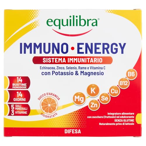 | Immuno Energy, Integratore per la Normale Funzione del Sistema Immunitario a Base di Sali Minerali e Vitamine, Riduce Stanchezza e Affaticamento, 14 Bustine