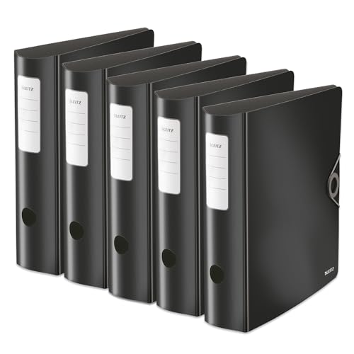| 5 raccoglitori formato A4, larghi, dorso arrotondato, larghezza 8,2 cm, chiusura con elastico, in poliuretano leggero, raccoglitore in plastica, colore nero