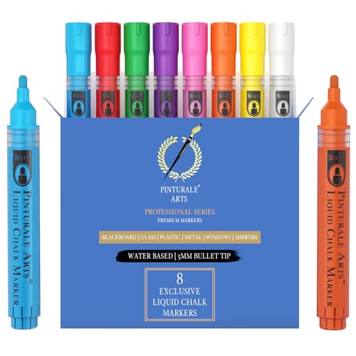 | Set 8 Colori | Pennarelli Per Vetro Lavabili | Punta 3 mm | Pennarelli Gesso Liquido Per Lavagna Nera, Per Vetro, Cancellabile A Secco