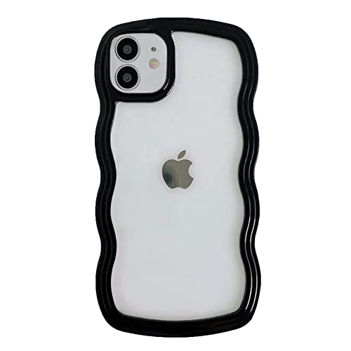| iPhone 12 Pro Cover Trasparente per Ragazze Donne, Silicone Morbido TPU Bordi Curvi Ondulati Antiurto Protettiva Case – Nero