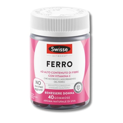 | Ferro Integratore per Supporto Formazione di Globuli Rossi e Emoglobina e Riduzione Stanchezza, Integratori con Vitamina C per Accrescere Assorbimento Ferro, 40 Gommose, Gusto Uva