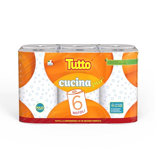 | confezione di 6 rotoli di Asciugatutto decorato con Motivo Geometrico, Tecnologia HI-PER per Massima Assorbenza e Resistenza, In Pura Cellulosa FSC® MIX, Imballo Riciclato min. 50%