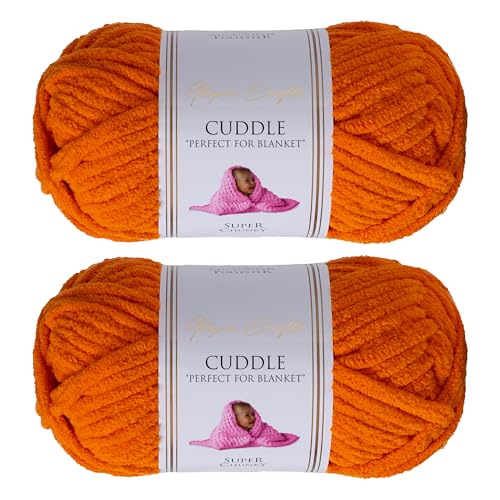 | Gomitolo da 100 g – 60 m – Pumpkin Orange Filo Chunky Morbido e Facile da Lavorare – Lavabile in Lavatrice – Confezione da 2