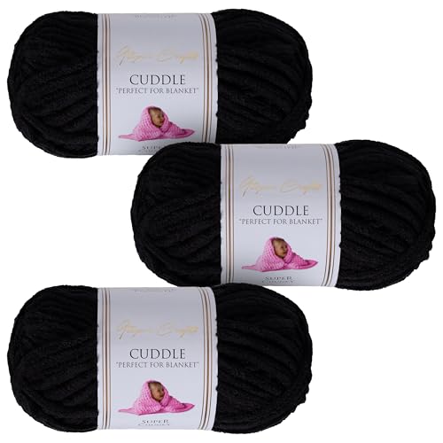 | Gomitolo da 100 g – 60 m – Black – Filo Chunky Morbido e Facile da Lavorare – Lavabile in Lavatrice – Confezione da 3